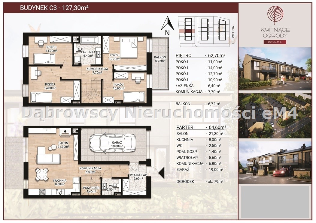 Oferujemy do sprzedaży segment C3 w inwestycji "Kwitnące Ogrody Dojlidzkie" składającej się z 16 budynków mieszkalnych jednorodzinnych, niepodpiwniczonych w zabudowie szeregowej położonych w Białymstoku przy ul. Wodnej na osiedlu Dojlidy Górne.