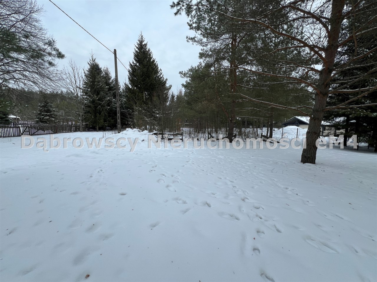 Działka płaska, zadrzewiona, ogrodzenie drewniane.