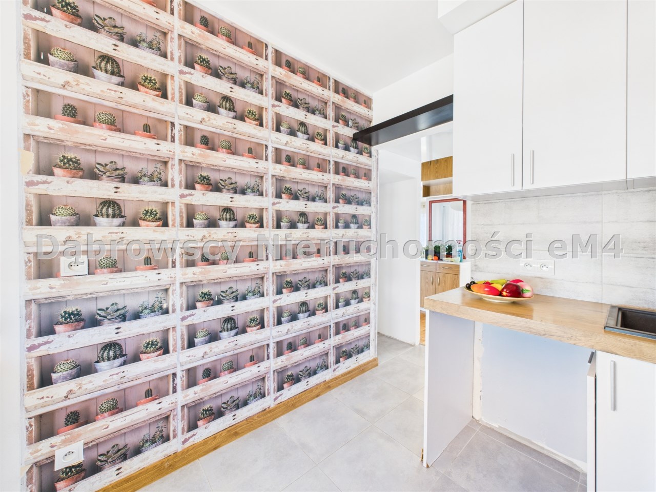 Kuchnia (6 m²) – widna i funkcjonalna, z zabudową meblową i miejscem na piekarnik oraz zmywarkę. W przejściu wyodrębniono miejsce na ustawienie lodówko-zamrażarki tak, aby nie ograniczać przestrzeni w samej kuchni.