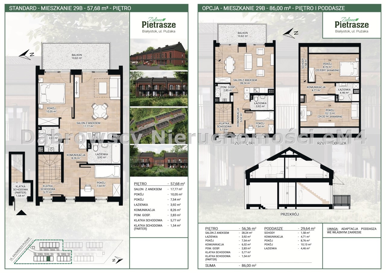 "Zielone Pietrasze" składającej się niskich budynków tworzących kameralne osiedle w bezpiecznej okolicy, wśród zieleni, w pobliżu Lasu Pietrasze.