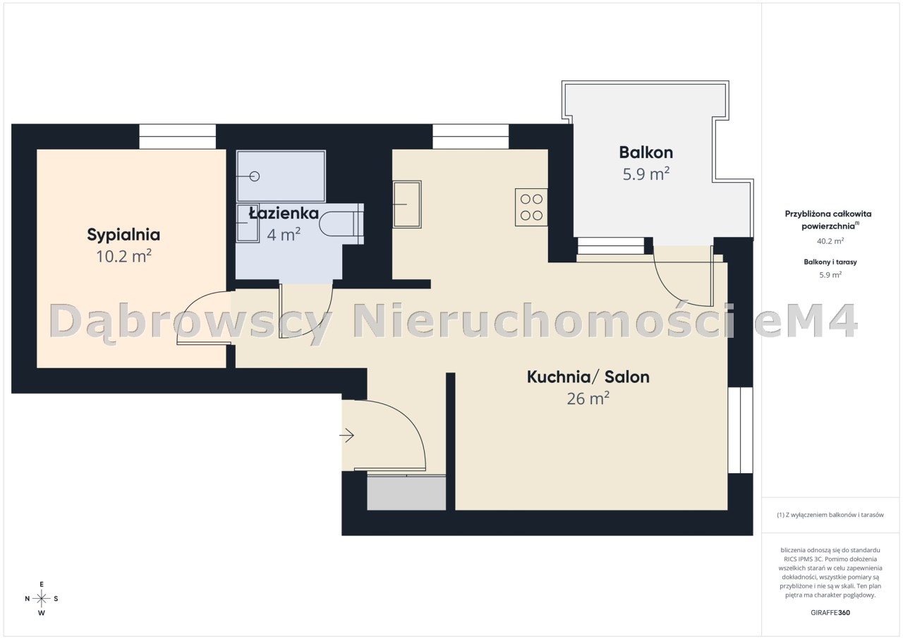 Powierzchnia balkonów/tarasów 5,90 m²