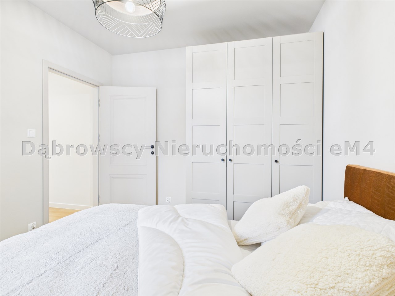 Mieszkanie zostało starannie wykończone i urządzone z dbałością o każdy detal. Dominuje w nim jasna, beżowa kolorystyka, która tworzy przytulną i spokojną atmosferę oraz optycznie powiększa wnętrze.